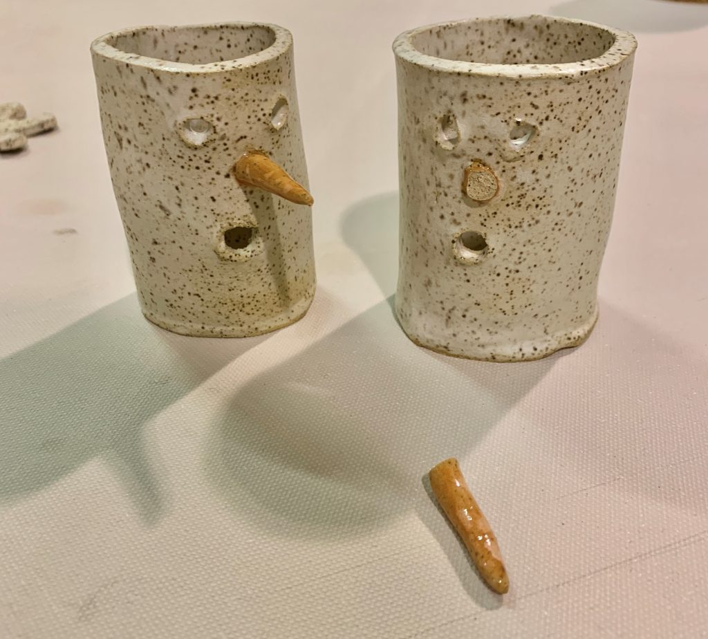 Hello~ it’s Tiffany, Ken’s sister here to share the surprised snowman photo that I sent to him via the “Inmate Photos” app. I am an amateur potter who still needs to learn how to correctly affix a carrot nose so that it can survive the kiln. I did eventually glue the carrot nose back on, and so he’s all good in the end 🙂